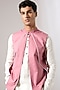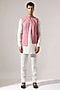 Featuring a pink bundi jacket in cotton base with asymmetric piping detail. Style it with a kurta set and mojaris for a festive occasion, wedding, engagement or sangeet ceremony.