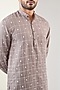 Featuring a stone-coloured kurta in linen base with print. It is paired with trousers. Perfect attire for any festive occasion, exuding charm and elegance.