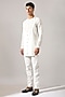 Featuring a white overlap kurta in linen base. It is paired with pants. Style it with mojaris for a festive occasion, cultural event or sangeet ceremony.