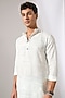 Featuring a white kurta in linen base with print. It is paired with trousers. Style it with mojaris for a festive occasion, cultural event, sangeet or engagement ceremony.