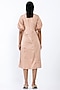 Featuring a nude dress in premium cotton base with voluminous sleeves and contrast piping.