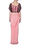 Featuring a baby pink off shoulder saree gown in lycra net with thread work all over the bodice.