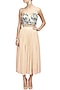 Multicolour floral embroidered bustier with peach flared skirt