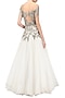 Featuring a white off shoulder flounce gown in cotton satin with stiff net