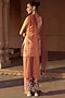Featuring a beige and brown tie-dye kurta in silk base with hand embroidery. It is paired with brown hand-embroidered palazzo pants and a net embroidered choker dupatta. Accessorize it with statement jewellery and heels for a wedding or an engagement ceremony.