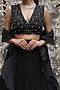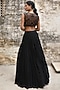 Featuring a black gathered lehenga in georgette base. It is paired with an opada silk blouse having pearls, sequins and cutdana hand embroidery, including a net and organza frill dupatta and a belt. Accentuate it with statement jewellery and heels for a wedding or sangeet ceremony.