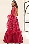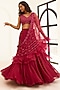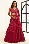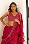 Featuring a plum kalidar lehenga saree in georgette, organza and upada silk base. It is paired with a blouse and a net frilled dupatta having resham embroidery. Accentuate with statement jewellery and heels for a sangeet or engagement ceremony.