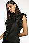 Featuring a black top in satin base with ruffle detail and a high neckline. Accentuate it with pants, dangler earrings and heels for evening soirees.
