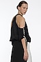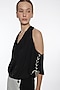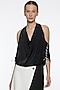 Featuring a black top in satin base with cord detailing. Accentuate it with pleated pants, statement earrings and heels for a complete look.