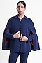 Featuring a blue cape in banana crepe and armani satin base with hook closure. Style it with pants, stud earrings and heels for a casual or brunch wear.
