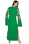 Featuring an everglades green dress in banana crepe base with embellishment. Accentuate it with dangler earrings and heels for a casual look.