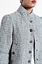 Featuring a grey swing jacket in tweed base with standing collar, pockets, piping detail and metal button closure. Style it with pants, dangler earrings and heels for a casual, get together or brunch wear.