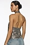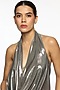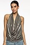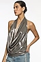 Featuring a gunmetal colored top in martin spandex base. Accentuate it with pleated pants, statement earrings and heels for a complete look.