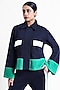 Featuring a navy and green jacket in fleece fabric base with wide A-line sleeves, structured collar, snap button, color-block detail and patch pockets. Style it with pants, dangler earrings and heels for a casual, get together or brunch wear.