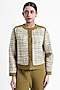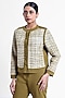 Featuring an olive green jacket in tweed and banana crepe base with snap button closure, satin piping and patchwork. Style it with pants, stud earrings and heels for a casual, get together, office or brunch wear.