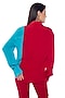Featuring a red vamp and blue blossom shirt in silk crepe base. Balance the structure with flowy pants and sleek heels for effortless elegance.