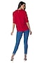 Featuring a red vamp ruffled top in georgette base. Balance the structure with flowy pants and sleek heels for effortless elegance.