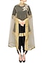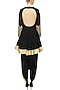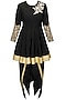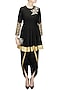 Featuring a black cotton silk short flared kurta with hand dabka embroidery on shoulder and sleeves along with gold border.