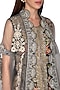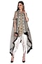 Featuring a black jacket in organza base with thread and dabka work embroidery. It is paired with a matching cape and dhoti in blended silk cotton fabric.