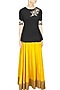 Featuring a black hand embroidered peplum blouse in cotton lycra base with floral pearl and dabka work on the yoke and sleeves. It has a keyhole detailing on the shoulders.
