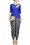 Featuring a blue cotton lycra peplum top with hand embroidered dabka in floral pattern.