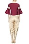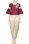 Featuring a maroon hand embroidered crop top in cotton silk base with floral pearl and dabka work on the yoke and sleeves. It has bell sleeves detailing.