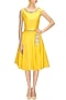 Featuring a yellow cotton silk midi skirt with hand dabka embroidrery on waist.