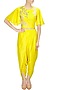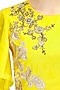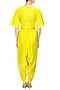 Featuring a yellow cotton silk crop top with hand dabka embroidery on front. It has bell sleeves and zipper at back.