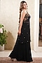Featuring a black off-shoulder cape in organza base with hand and machine embroidery. It is paired with a padded blouse and pure crepe sharara pants. Accentuate it with zircon jewellery and heels for festive occasions or sangeet ceremony.