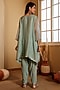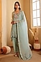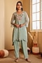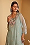 Featuring a blue kurta in organza base with hand embroidery. It is paired with pants and a dupatta. Style with polki earrings, soft curls and heels for festive occasions or pre-wedding ceremonies.