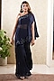 Featuring a blue off-shoulder cape in organza base with hand and machine embroidery. It is paired with a padded blouse and pure crepe sharara pants. Accentuate it with zircon jewellery and heels for festive occasions or sangeet ceremony.