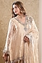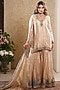Featuring a golden kurta in tissue base with thread work, sequins and floral motif embroidery. It is paired with tissue sharara pants and a dupatta. Accentuate it with zircon jewellery and heels for festive occasions or sangeet ceremony.