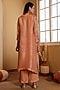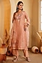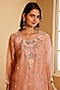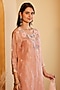 Featuring a pink kurta in organza base with hand embroidery. It is paired with pants and a dupatta. Style with polki earrings, soft curls and heels for festive occasions or pre-wedding ceremonies.