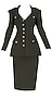 3 piece military green jacket and skirt set with dull silver buttons by Map Xenca.
