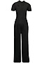 Shivan and Narresh- Featuring a black stretch cotton jumpsuit with zipper detailing in front and ruffle detailing on neckline.