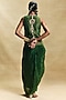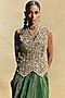 Featuring a green waistcoat in crush tissue base with hand embroidery. It is paired with a crepe tissue draped skirt. Accentuate it with statement polki jewellery, soft waves or a sleek bun, and embellished heels for a stunning festive or mehendi look.