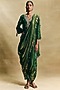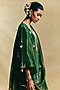 Featuring a green straight top in crush tissue base with hand embroidery. It is paired with crepe tissue low crotch pants and a dupatta. Accentuate it with statement polki jewellery, soft waves or a sleek bun, and embellished heels for a stunning festive or mehendi look.