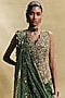 Green Crush Tissue Hand Embroidered Draped Pant Set