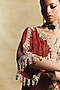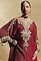 Featuring a red short kurta kaftan in crush tissue base with hand embroidery. It is paired with crepe tissue farshi salwar pants. Accentuate it with statement polki jewellery, soft waves or a sleek bun, and embellished heels for a stunning festive or wedding look.