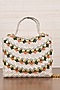 Featuring an ivory clutch in silk blend base with stone beads and thread embroidery. It has a brass sling chain.