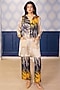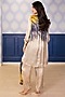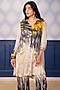 Featuring a beige straight-cut kurta in satin base with sunflower print, a peter pan collar and striped chanderi foil pockets. It is paired with pants. Accentuate it with statement earrings, heels and a clutch for a festive look.