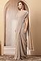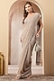 Featuring a beige saree in tissue base. It is paired with an embroidered net blouse. Accentuate it with block heels and statement earrings for festive ceremonies or weddings.