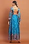 Featuring a blue maxi dress in satin base.
