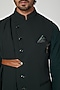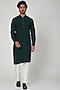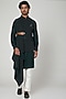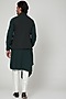 Featuring a bottle green drape jacket in italian crepe base. It is paired with monotone rayon kurta, white box pants and a leather belt. Accentuate it with loafers or mojaris, perfect for weddings, festive gatherings and cultural celebrations.