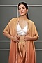 Featuring a brown ombre shrug in linen crepe base with golden zari and dori embroidery. It is paired with a white bustier and straight pants. Accentuate it with statement earrings and heels for a festive look.
