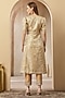 Featuring a gold kurta in silk brocade base with front slit, structured V-neckline, puffed elbow sleeves, mirror work, zari and sequins embroidery. It is paired with cropped embroidered chanderi trousers. Accentuate it with statement earrings and block heels for festive occasions.