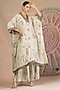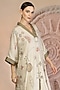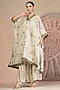 Featuring a grey kaftan in soft slub cotton base with patchwork detailing. It is paired with box pleated wide leg pants. Accentuate with statement earrings and heels for a festive occasion.