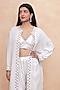 Featuring an ivory shrug in linen crepe base with golden zari and dori embroidery. It is paired with a bustier and straight pants. Accentuate it with statement earrings and heels for a festive look.