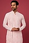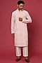 Baby Pink Thread Embroidered Kurta Set For Boys