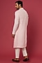 Featuring a baby pink kurta for boys in silk blend base with geometric thread work. It is paired with contrasting off-white pants.